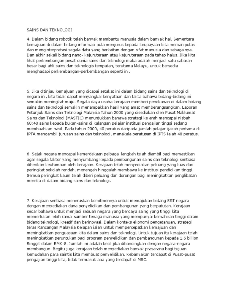 Kuala Lumpur Tulisan Jawi. Kepentingan Sains Dan Teknologi Dalam Kehidupan Manusia. Malaysia telah dan akan terus aktif dalam OIC Komanwel NAM dan PBB.