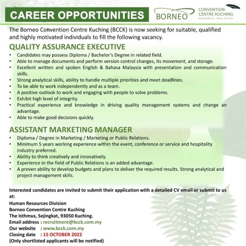 . Borneo medical centre we are inviting applications for the following positions. Borneo post job vacance voyages Job Vacancies At Borneo Technical Thailand Limited we place a great emphasis on building and developing highly competent staff. Check out our available career and job opportunities at Borneo Eco Tours and Sukau Rainforest Lodge.